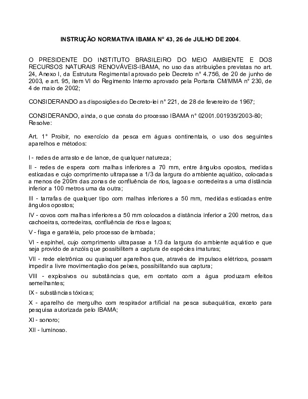 INSTRUÇÃO NORMATIVA IBAMA N° 43, 26 de JULHO DE 2004 Adm Sepetiba 4 INSTRUÇÃO NORMATIVA IBAMA N° 43, 26 de JULHO DE 2004 Read More »