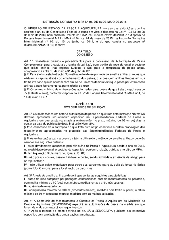 INSTRUÇÃO NORMATIVA MPA Nº 05, DE 15 DE MAIO DE 2015 Adm Sepetiba 4 INSTRUÇÃO NORMATIVA MPA Nº 05, DE 15 DE MAIO DE 2015 Read More »