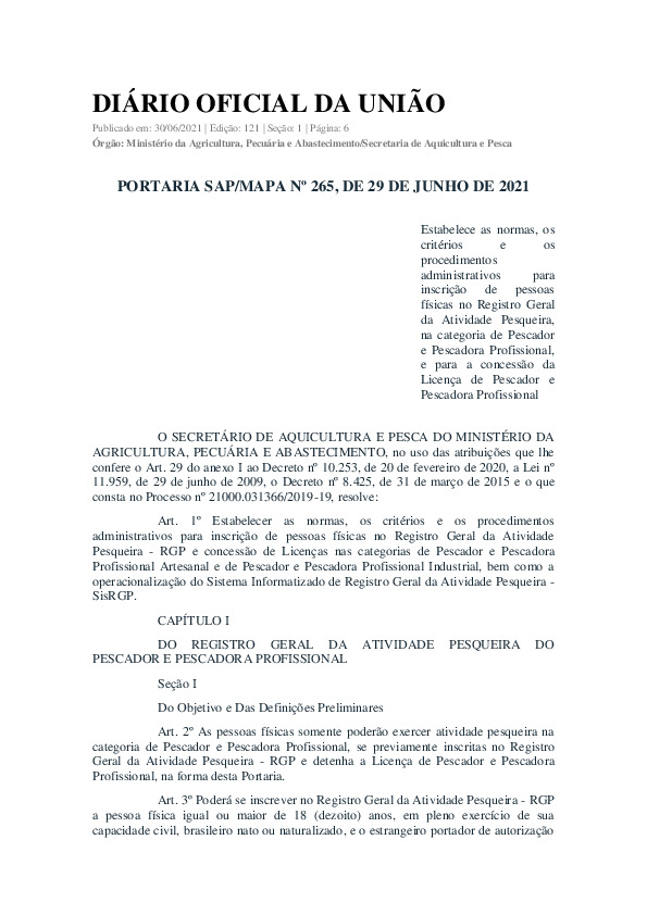 PORTARIA SAP-MAPA Nº 265