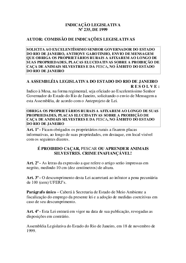 INDICAÇÃO LEGISLATIVA Nº 235, DE 1999 Adm Sepetiba 4 INDICAÇÃO LEGISLATIVA Nº 235, DE 1999 Read More »
